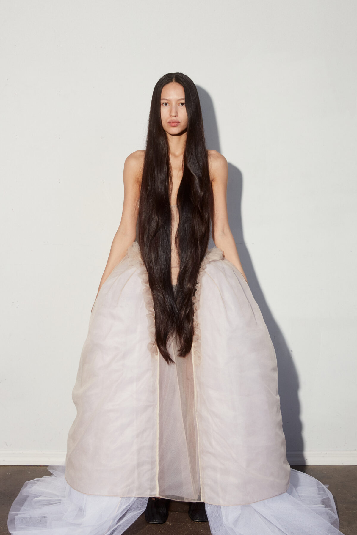 Meruert Tolegen is here to guide you with sizing and styling advice. Please reach out with any questions you may have. Virtual private appointments can be scheduled at your convenience. Contact our customer care team at admin@meruert-tolegen.com.
