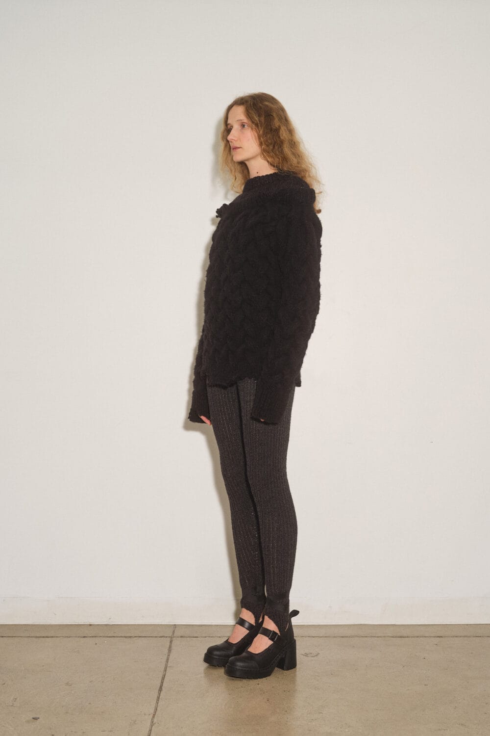 The Distressed Basket Weave Hand-Knit Jumper is hand sewn in New York City.